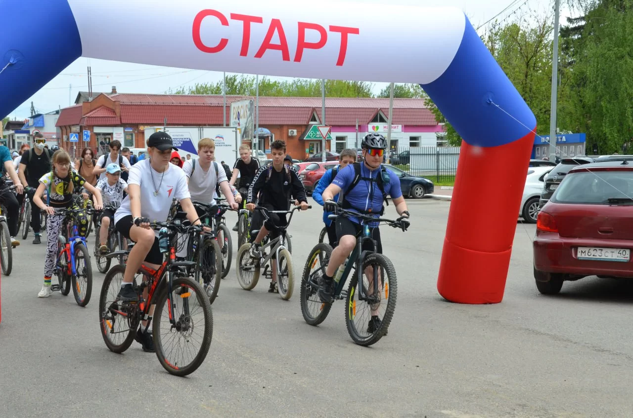 Стартовал велопробег от здания районной администрации. Возглавил колонну учитель плавания из Медынской средней школы Роман Иванов.