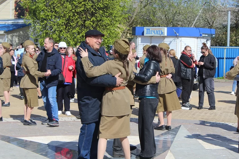 Желающих поучаствовать в акции среди собравшихся под городскими часами в этот раз оказалось так много, что легендарную песню включили повторно, и теперь под ее звуки вальсировали уже и жители Медыни и района. Кроме того, для медынцев и гостей города прозвучало несколько патриотических песен в исполнении преподавателей и учеников Медынской детской школы искусств.
