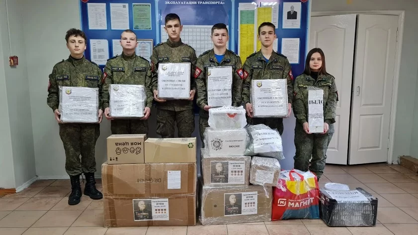Помогают согреваться русским бойцам и кадеты из Перемышльского техникума эксплуатации транспорта. В коробки ребята кладут теплые вещи и продукты первой необходимости.