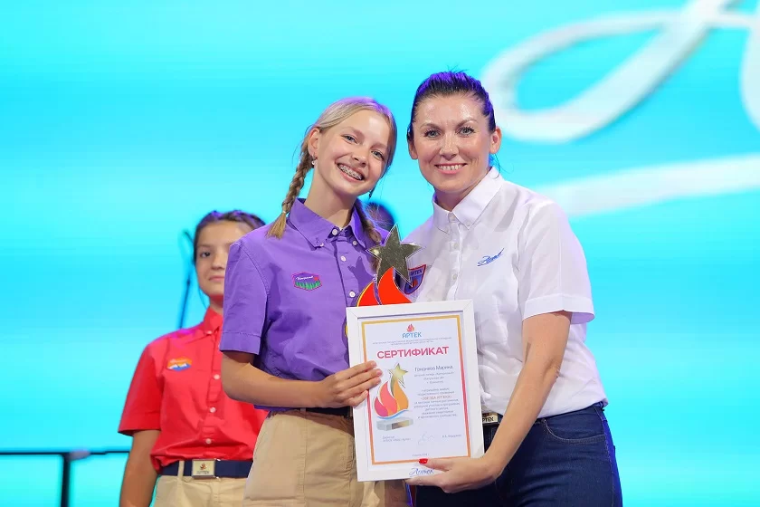 Также по традиции на торжественной церемонии наградили победителей конкурса «Звезда Артека», среди которых оказалась жительница города Сухиничи Марина Гриднева из детского лагеря «Кипарисный».