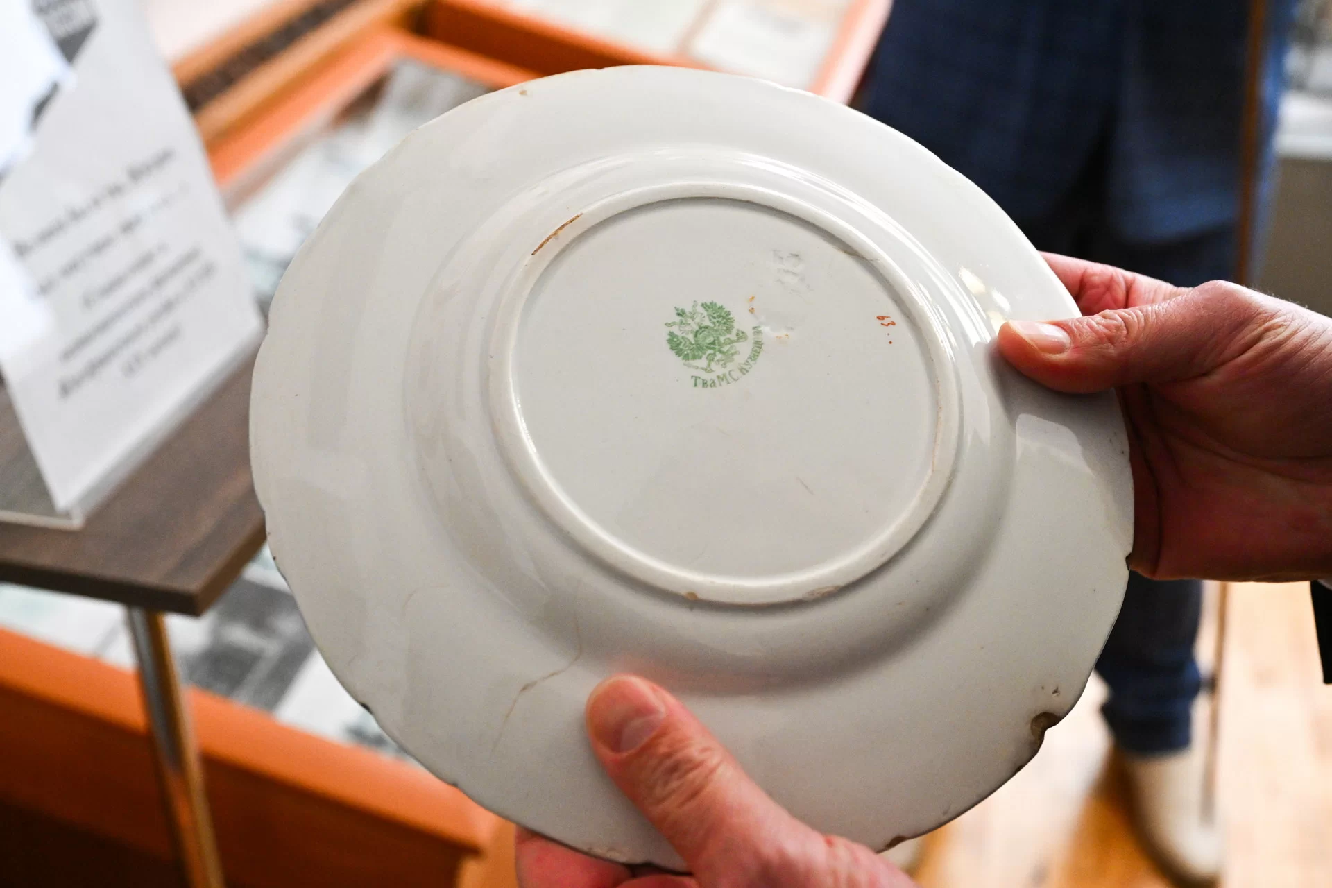 В день приезда почетных гостей жительница районного центра подарила музею тарелку начала прошлого века, которую изготовило «Товарищество Кузнецовых», работавшее на территории Жиздринского уезда.