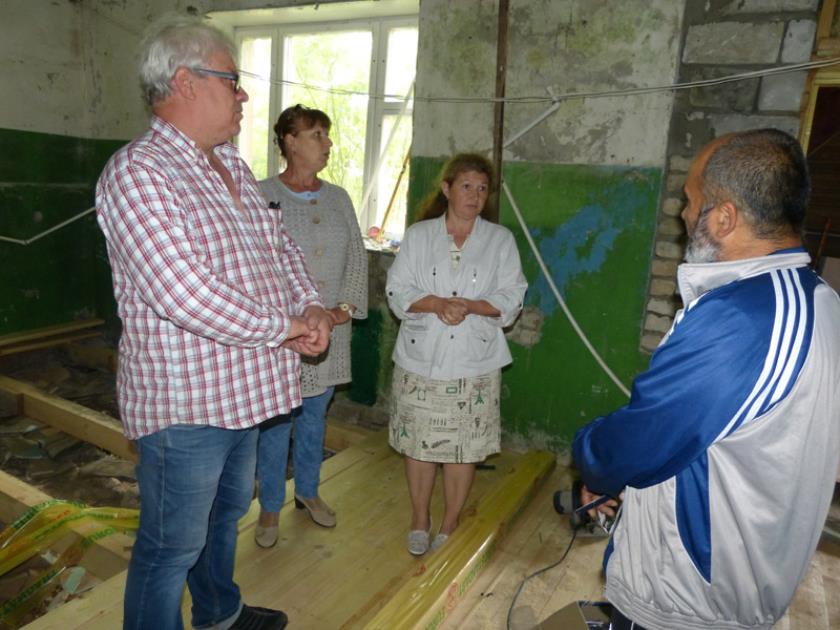 На объекте застали бригаду строителей, которая настилала пол. Члены комиссии сразу обратили внимание на то, что лаги и доски не обработаны специальным средством, чтобы не гнили и не плесневели, а в фундаменте не сделаны отдушины. Состоялся серьезный разговор со строителями.