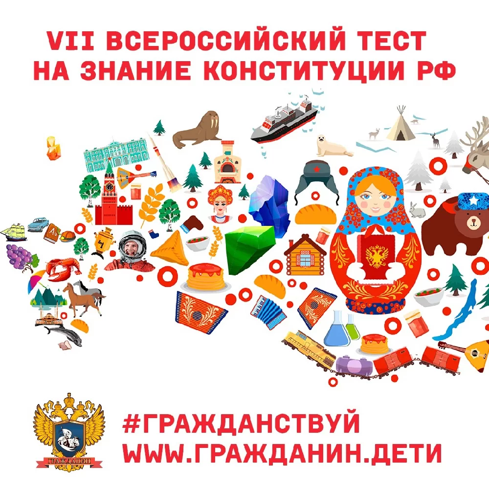 В тесте на знание Конституции нашей страны могут принять участие все желающие. Подробная информация об условиях и правилах участия - на сайте: https://гражданин.дети ,а также в группе ВКонтакте: https://vk.com/citizz