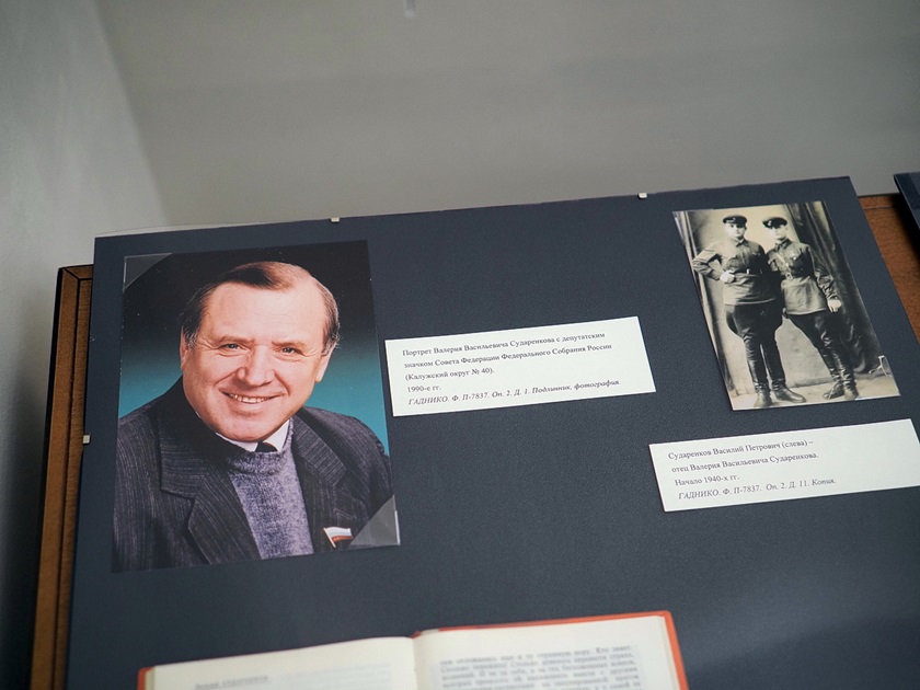 В холле библиотеки расположена выставка книг о жизни и деятельности Валерия Сударенкова из фондов областной научной библиотеки им. В.Г. Белинского, в коридоре - документальные материалы из фондов Государственного архива Калужской области, документы и фотографии о работе на должности первого секретаря Калужского горкома КПСС, в Совете Министров Узбекской ССР, на посту губернатора Калужской области, в Совете Федерации Федерального Собрания Российской Федерации и в Парламентской ассамблее Совета Европы, а также документы, отражающие работу Валерия Васильевича Сударенкова над Конституцией Российской Федерации 1993 года – проект Конституции с его многочисленными рукописными правками.
