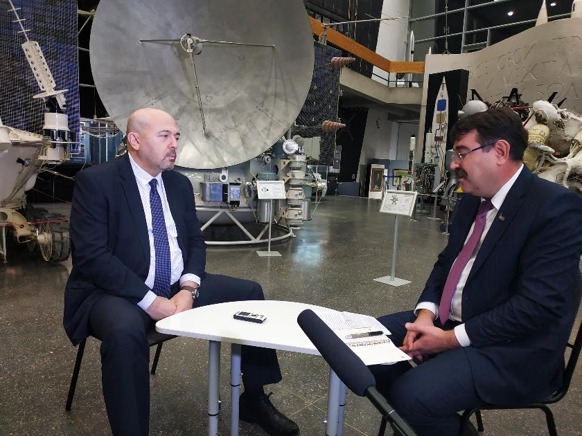 Завершился визит посещением Государственного музея истории космонавтики им. К.Э.Циолковского. Здесь и прошла беседа господина Корена с главным редактором газеты «Весть» Юрием Расторгуевым.