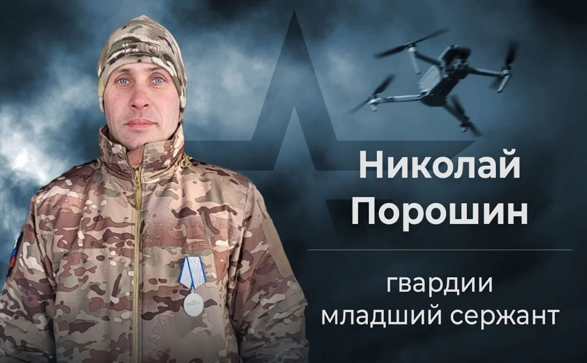 Командир расчета БПЛА гвардии младший сержант Николай Порошин с помощью беспилотника патрулировал линию фронта, выявляя скопления живой силы и технику противника. Во время облета он обнаружил тяжелый украинский дрон «Баба-яга». Вражеский беспилотник собирался атаковать российскую эвакуационную группу, которая выносила с поля боя раненого бойца. Понимая, что только он может предотвратить удар, Николай Порошин направил свой дрон на перехват. В воздушном бою оператор БПЛА повредил винт «Бабы-яги». Потеряв управление, аппарат рухнул, а его боеприпасы взорвались на безопасном расстоянии от группы. Благодаря мужеству и профессионализму гвардии младшего сержанта Николая Порошина жизни раненого бойца и эвакуационной группы были спасены.