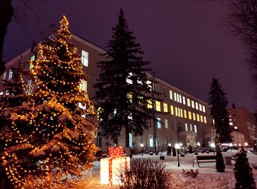 Больница скорой медицинской помощи для создания позитивного новогоднего настроения калужан и пациентов нарядила сразу две елки, обе настоящие, – по одной у каждого лечебного корпуса больницы.