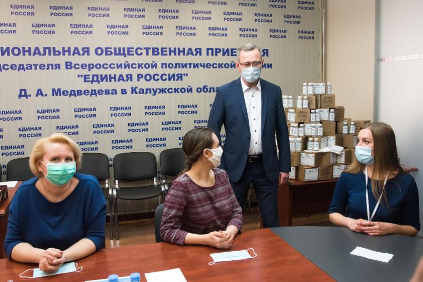Владислав Шапша передал волонтёрам и работающим в штабе специалистам Калужского комплексного центра социального обслуживания населения «Забота» дезинфицирующие гели от компании Л’Ореаль для использования в работе с пожилыми гражданами. Глава региона сообщил, что накануне представители компании передали области 10 тысяч гелей, которые были распределены между медицинскими и социальными учреждениями. <br>