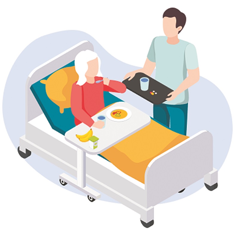 - Красивая посуда и салфетки. Даже если человек ест в кровати или не ест сам и не будет пользоваться ими самостоятельно.