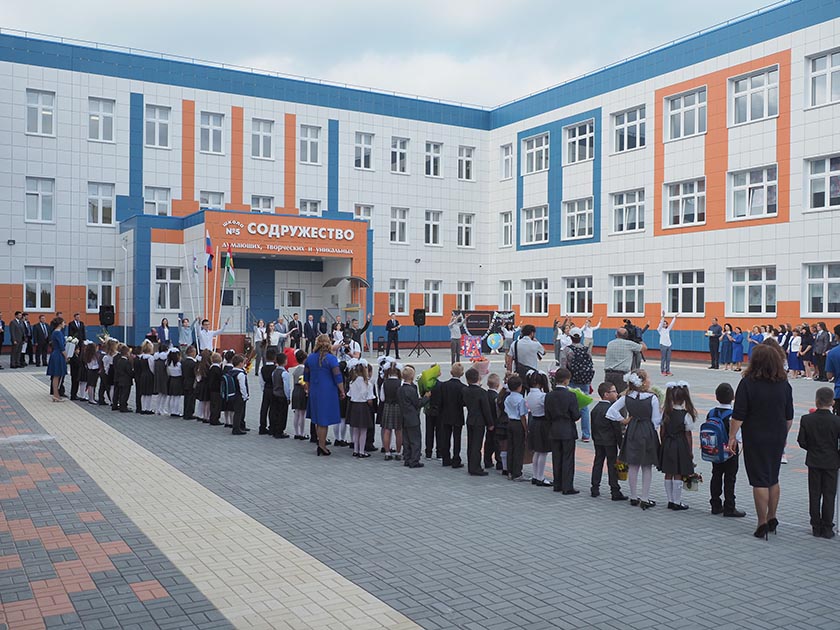 Здание новой школы, рассчитанное на тысячу учеников, была построена в рамках нацпроекта «Образование», инициированного президентом страны Владимиром Путиным. На это с учетом работ по благоустройству было потрачено более 900 млн рублей.