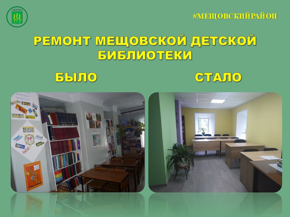 В администрации района рассказали, что детская библиотека им. В. Д. Берестова открылась после ремонта. Строители привели в порядок лестницу на второй этаж, заменили полы и электропроводку, покрасили стены во всех помещениях, в том числе и в читальном зале. Заменили дверные проемы.