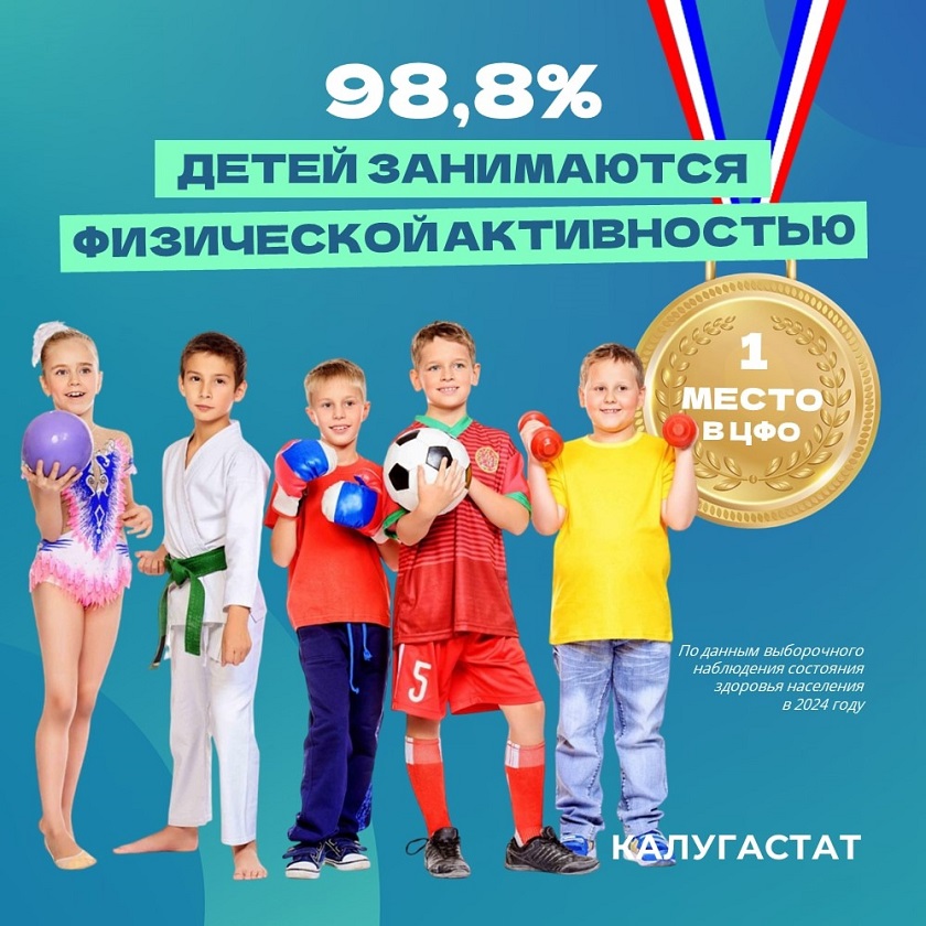 В Калугастате отметили, что средний показатель по Центральному федеральному округу составляет 90,1%. На данный момент Калужская область занимает первое место среди остальных регионов ЦФО. Также в топ-5 по уровню физической активности детей входят Брянская, Владимирская, Смоленская и Липецкая области.