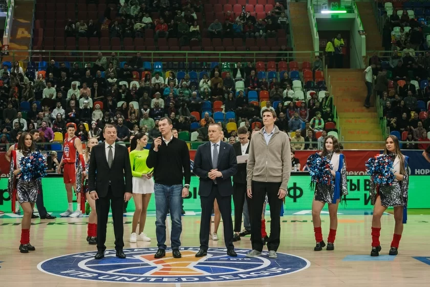 Михаил Дегтярев совершил символическое вбрасывание перед началом баскетбольного матча Единой лиги ВТБ между командами ЦСКА и Уралмаш.