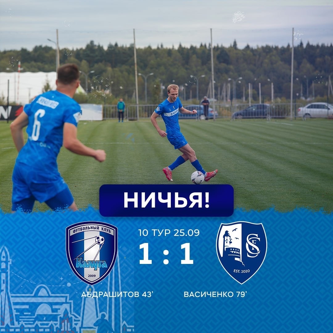 В понедельник, 25 сентября, в Калуге состоялся матч между местными футболистами и командой «Сахалинец». В Конце первого тайма калужане вышли вперед благодаря голу Абдрашитова. Однако, удержать преимущество не удалось, и на 79 минуте гости сравняли счет, который больше не изменился.