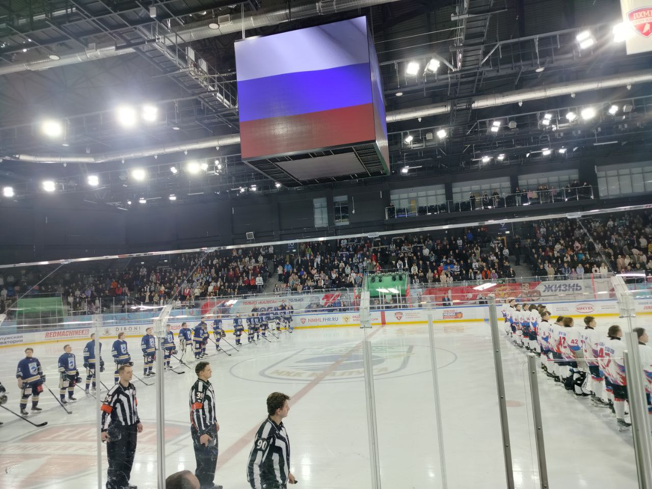 Начался матч с громкой сирены. Первый период не принёс ни одной из команд голов. Однако за это время оба клуба сыграли по две минуты в меньшинстве. В перерыве между периодами своим выступлением гостей порадовали фигуристки из спортшколы «Космос».