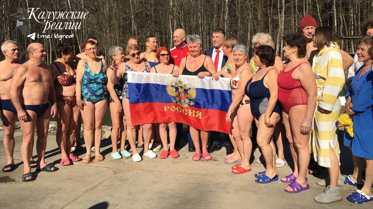 В этот морозный день на Сероводородные Озера приехало более тридцати желающих искупнуться. Мероприятие было организовано Советом ветеранов спорта при министерстве спорта Калужской области.