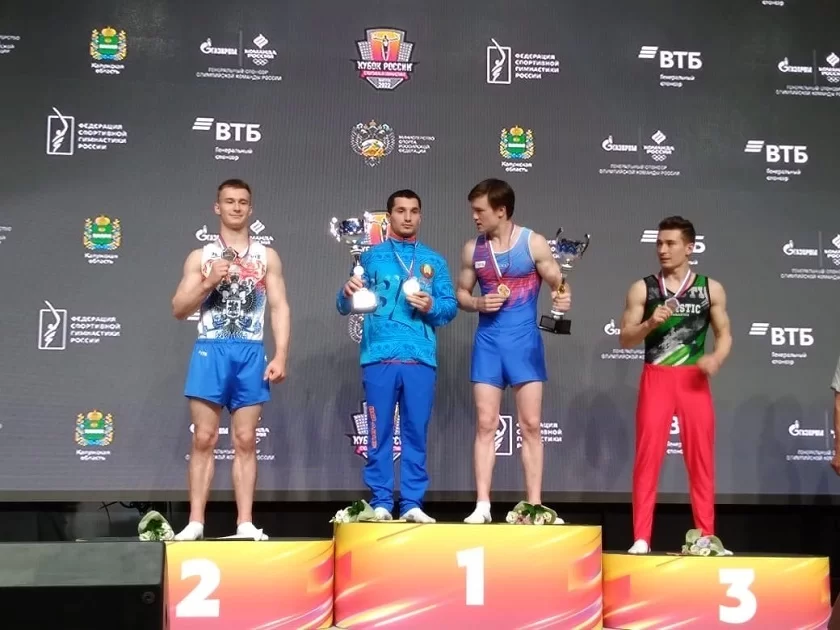 Накануне победу в вольных упражнениях одержал Кирилл Прокопьев, представляющий Владимирскую область. На втором месте Даниел Маринов из Казани, на третьем - олимпийский чемпион Токио Давид Белявский (Екатеринбург). Необходимо сказать, что на помосте лучший результат (14, 400 балла) показал белорусский гимнаст Егор Шарамков. Ему также была вручена награда.