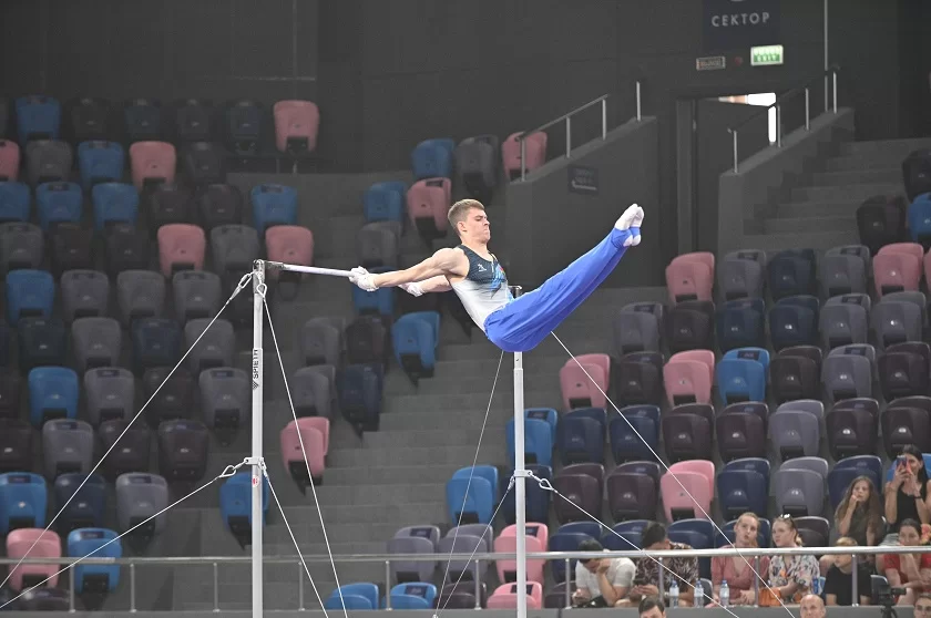 После квалификационных соревнований лидирует Никита Нагорный, на втором месте Даниел Маринов, на третьем - Давид Белявский. Сегодня у гимнастов тренировочный день, а завтра, 8 июля, пройдут финалы в многоборье.