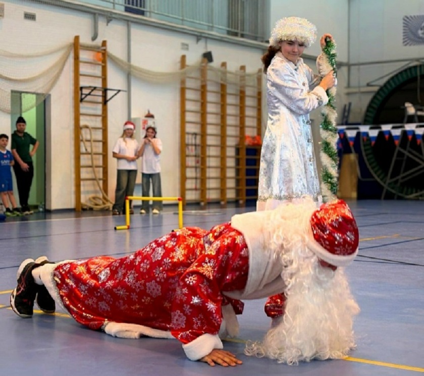 Ребята в возрасте от 6 до 11 лет демонстрировали силу, ловкость и выносливость, с азартом проходя сложную полосу препятствий. Но прежде чем вступить в борьбу, участников ждал приятный сюрприз. К ним на праздник пришли самые новогодние гости - Дед Мороз и Снегурочка. Волшебные персонажи поздравили всех с наступившим 2026 годом, вручили детям особые «конфеты силы и храбрости» и показали, что тоже не прочь размяться, доказав свою любовь к физкультуре.
