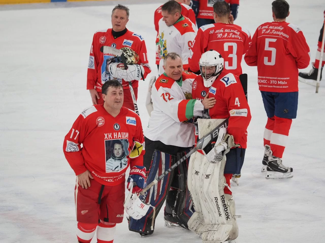 В товарищеском матче сразились сборная ветеранов Калужской области и команда "Наши", состоящая из космонавтов Звездного городка. Её первым капитаном был сам Юрий Гагарин.