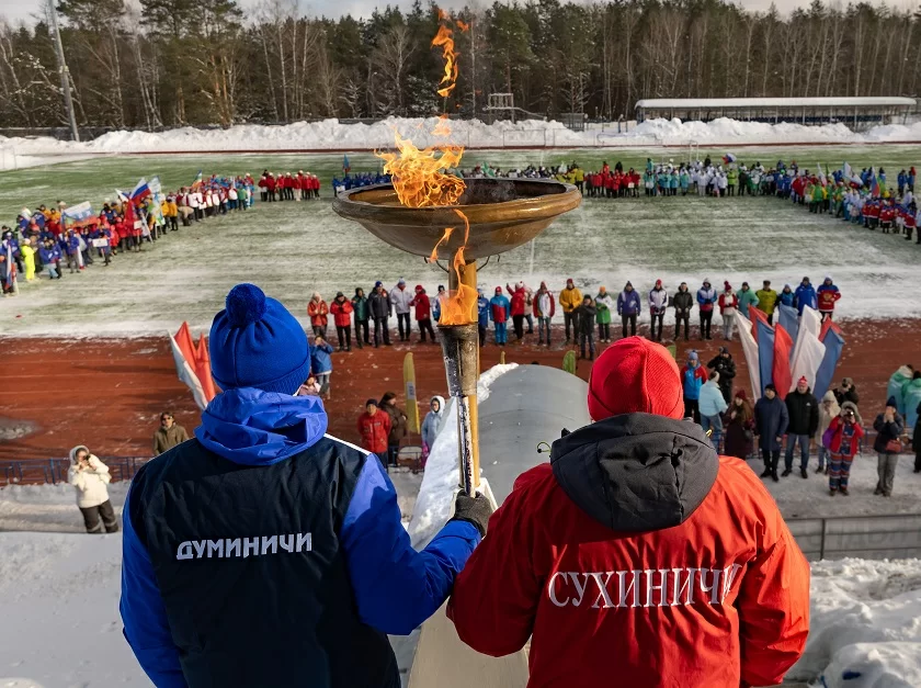 «» «Конечно, она появилась благодаря вашему участию, активной позиции», - обратился он к участникам.Флаг сельских игр подняли Вячеслав Морозов из Думиничского и Максим Захаров из Сухиничского округов, а огонь соревнований зажегся с помощью спортсменов и капитанов всех команд муниципалитетов, передававших друг другу факел с огнем.
