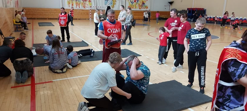 Открытие мероприятия началось парадом спортивных семейных команд, а также сопровождалось выступлением детского танцевального коллектива. Папы, мамы и их дети сдавали нормативы комплекса ГТО: наклон вперед из положения стоя на гимнастической скамье, поднимание туловища из положения лежа на спине, сгибание и разгибание рук в упоре лежа на полу и другие.