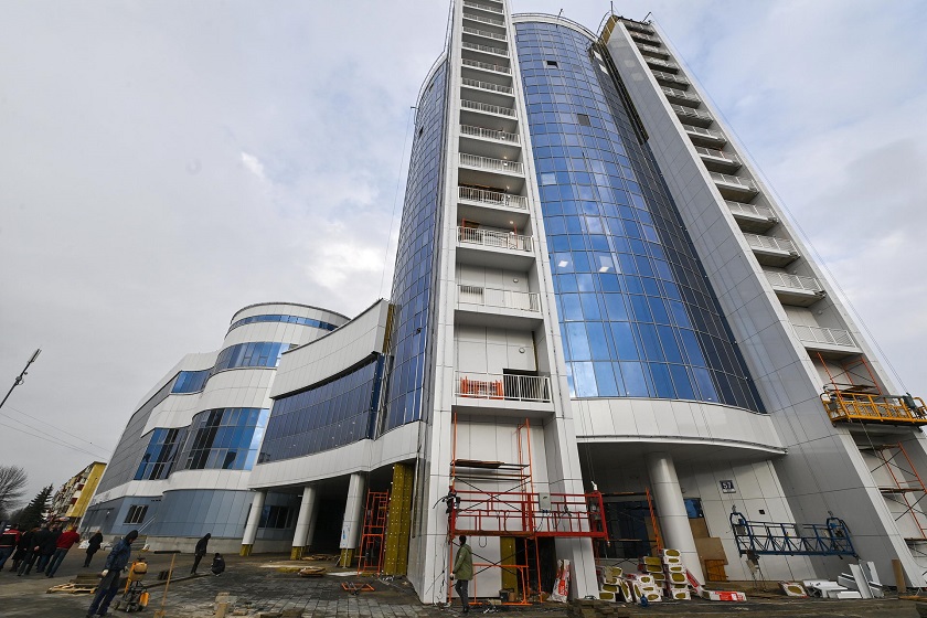 В здании дворца уже подключили медиакуб, заработала акустическая система. Также закончился монтаж зрительских кресел и работы на подземном паркинге.