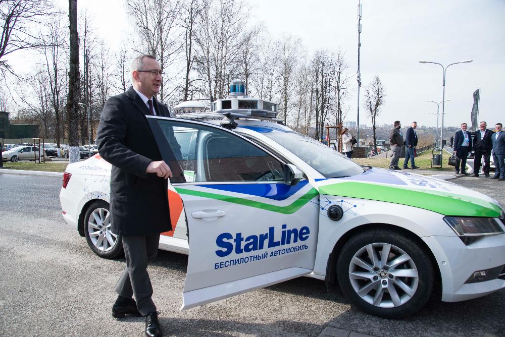 На площадку перед ИКЦ из беспилотного автомобиля «Шкода» вышел прибывший на конференцию губернатор Владислав Шапша. Эта машина оснащена оборудованием, которое решает задачи локализации автомобиля в пространстве, а также построения маршрутов движения. Для этого используются камеры и радары. Данные обрабатываются несколькими вычислительными центрами и контролируются компьютером. Глава региона протестировал беспилотник от входа в парк Циолковского до ИКЦ. Еще 10 лет назад такая поездка казалась фантастикой, а теперь это будущее автотранспорта.Перед началом конференции на площадке перед ИКЦ и в его фойе открылась выставка новых инновационных технологий, применяемых в транспорте и на дорогах России. Ее с интересом осмотрели губернатор и члены областного правительства, ведь многое из того, что демонстрировалось на выставке, могло быть применено в нашем регионе. Об этом с разработчиками новых дорожных и транспортных технологий и вели предварительные переговоры члены правительства. Особый интерес вызвала уже упомянутая «Шкода» – беспилотник, разработка НПО «СтарЛайн».