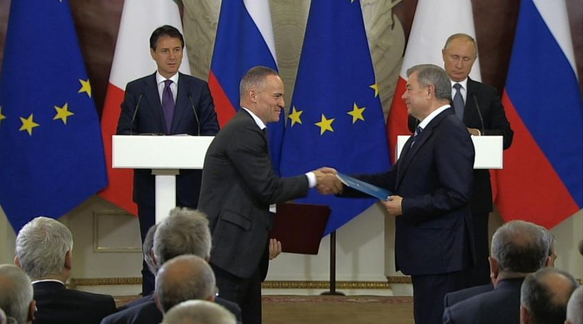 Церемония подписания прошла в присутствии Президента России Владимира Путина и премьер-министра Италии Джузеппе Конте в рамках встречи глав государств по вопросам, представляющим взаимный интерес.