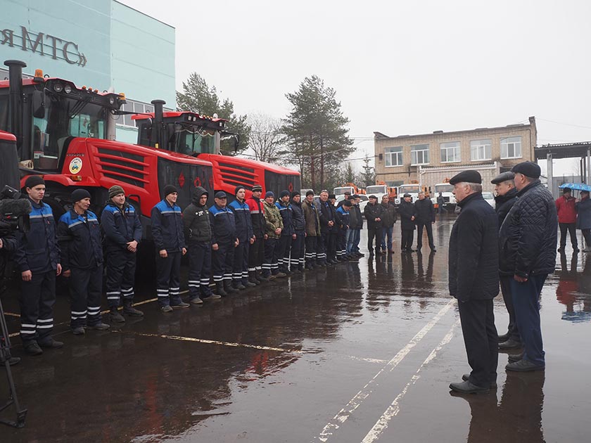 Начальник инспекции Гостехнадзора Николай Морозов и министр Леонид Громов осмотрели трактора и навесное оборудование к ним, размещённые на площадке главной базы Калужской МТС. Результат осмотра – техника готова к выходу в поле. Но, прежде, чем её вывезти, придётся дождаться погожих дней, когда снег растает, а земля просохнет. Но, в любом случае, механизаторы, как и в прежние годы, одними из первых в регионе, приступят к весенней пашне.