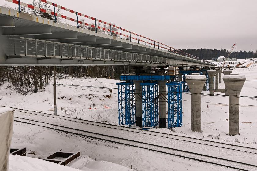 Завершена надвижка внешней части 312-ти метрового путепровода через Московскую железную дорогу и реку Каменка.