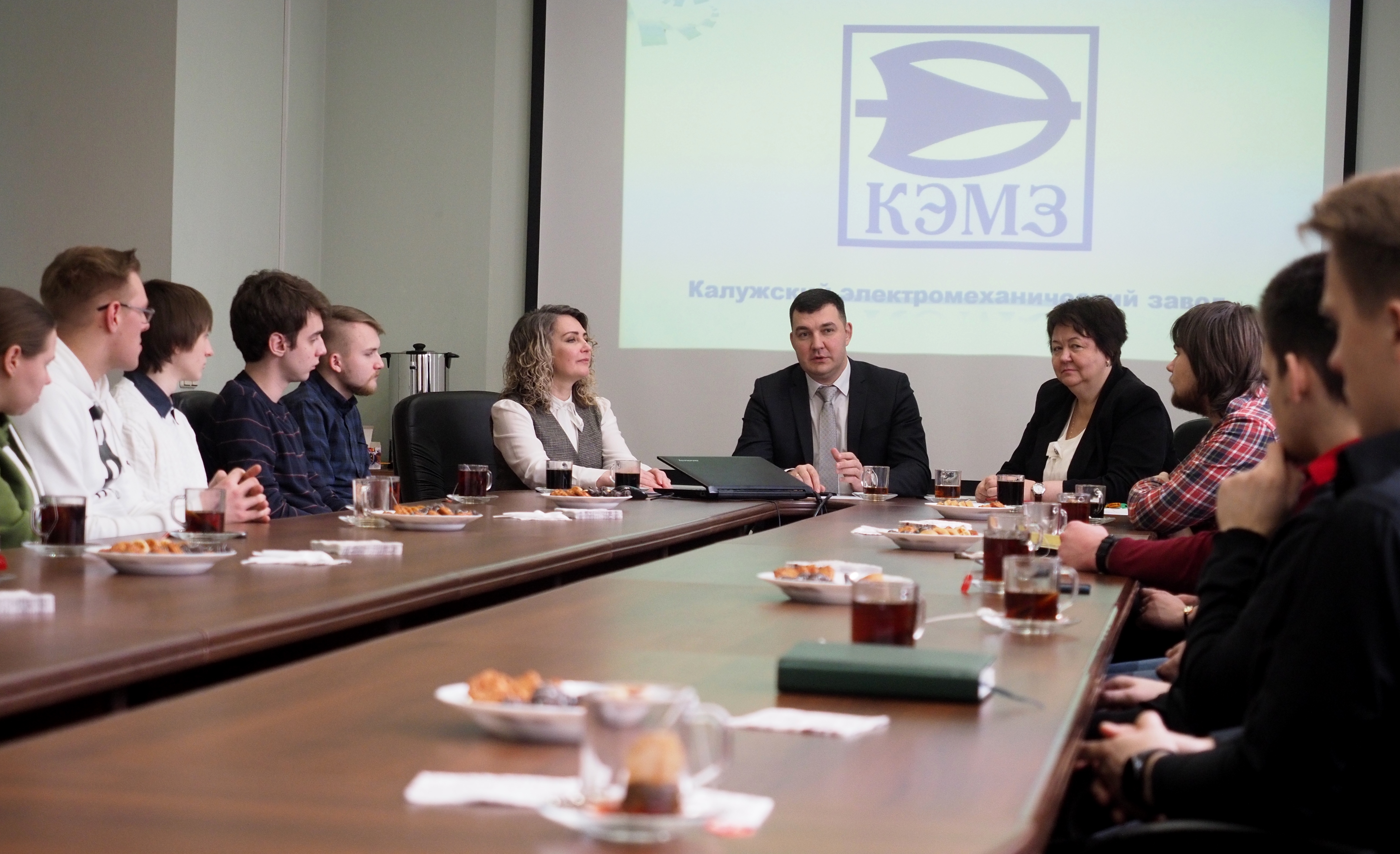 Студенты старших курсов Калужского филиала МГТУ имени Н.Э. Баумана, обучающиеся по целевому направлению АО «КЭМЗ», встретились с руководством этого предприятия и обсудили перспективы своей будущей работы. Генеральный директор АО «КЭМЗ» Борис Мовтян, окончивший этот же вуз, говорил с будущими инженерами и конструкторами непринуждённо, за чашкой чая, выясняя их взгляды и предпочтения на современном производстве, каковым и является АО «КЭМЗ». Кстати, Борис Мовтян возглавил КЭМЗ в 28 лет, что является рекордом в нашем регионе для подобных крупных предприятий. Но вначале генеральный директор акцентировал внимание на ежегодном послании президента России Федеральному Собранию, назвав его ориентиром на ближайшее будущее. Особо он отметил вопросы социальной поддержки молодых российских семей и дальнейшего роста ВВП, выхода отечественной экономики на передовые позиции в мире.Было особо подчеркнуто, что последние 15 лет предприятие внедряет в производство автоматизацию, цифровизацию. На заводе за счёт модернизации производства достигнут наиболее высокий уровень производительности труда среди предприятий традиционной промышленности. Регулярное участие в федеральных целевых программах позволяет предприятию закупать инновационное оборудование и создавать новые рабочие места, привлекательные в первую очередь для молодёжи.