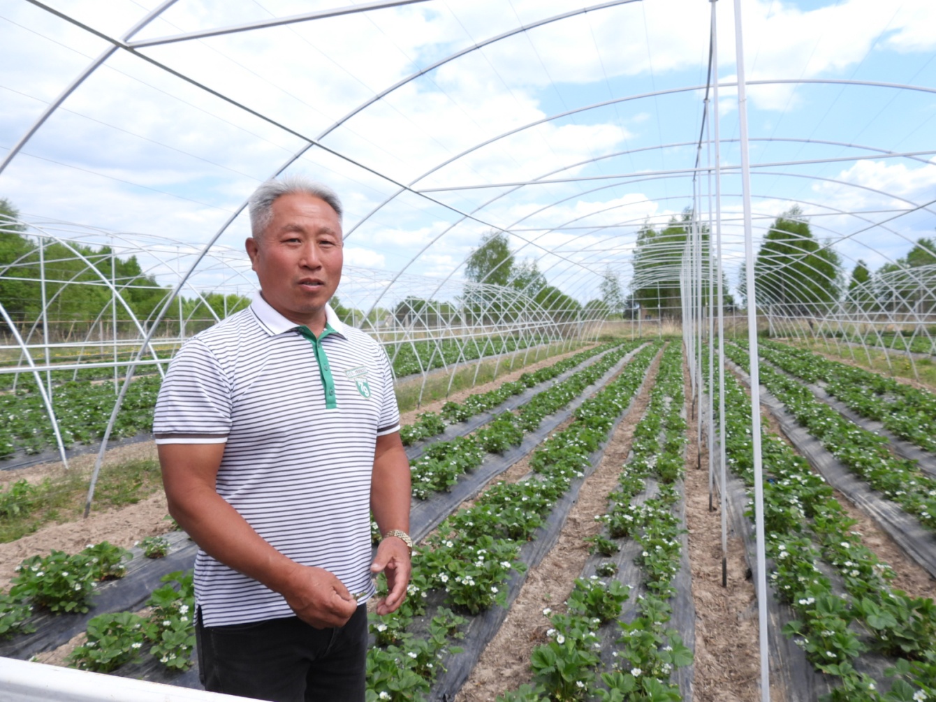 Жители деревни Кононово Владимир Пак и Лариса Ким уже второй год они занимаются выращиванием клубники и являются единственными в районе производителями этой вкусной и полезной ягоды.