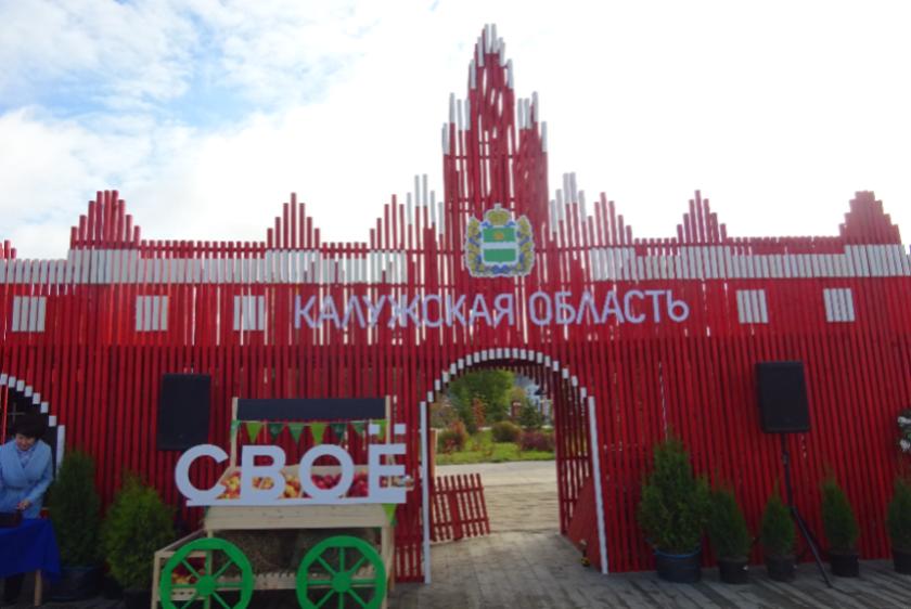 На сельскохозяйственной ярмарке свою продукцию представляют лучшие товаропроизводители нашей страны. Среди участников многочисленные предприятия Калужской области. Стенд наших земляков выглядит очень эффектно, поскольку стилизован под Гостиный двор - брендовый обект региона.