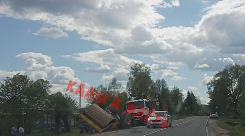 На размещенной в группе «Калуга Жесть» фотографии видно, что спецтехника съехала на обочину и перевернулась.