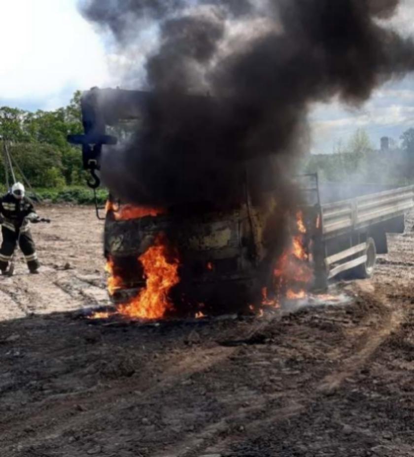 На улице Чкалова в Козельске произошло возгорание автокрана. Огонь полностью уничтожил автомобиль.