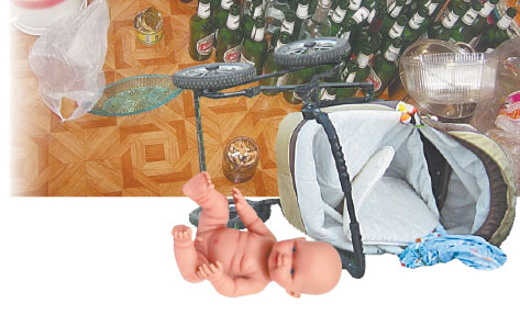 Картина предстала весьма неприглядная: на полу кругом мусор, окурки, пустые бутылки из-под водки и пива. Мать крепко спала на диване, ее так и не добудились, отец сам вынес ребенка из другой комнаты — голенького, в мокрой пеленке, найти какую-нибудь одежду для малыша не удалось, его увезли в больницу в пеленке и полотенце. После обследования у крохотного Димы был обнаружен закрытый перелом теменной кости.