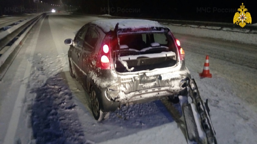 По фото с места происшествия видно, что у французской иномарки сильно повреждена задняя часть, даже отлетел бампер.