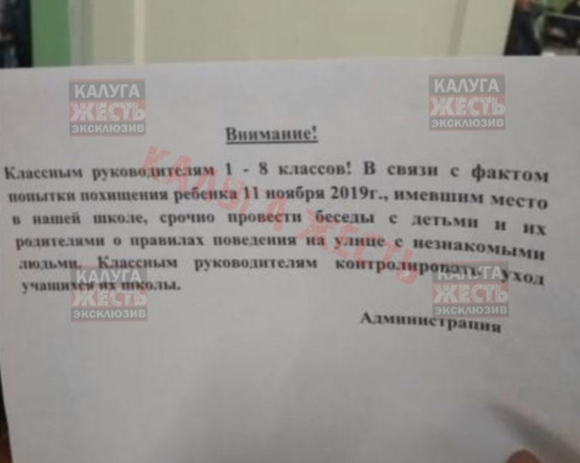 В пресс-службе Следственного комитета РФ по Калужской области подтвердили, что неизвестный мужчина, находясь у входа в калужскую школу №12, силой затащил в припаркованный неподалеку автомобиль мальчика, вышедшего после окончания уроков.