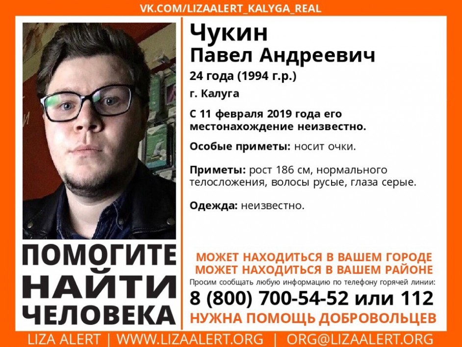 Уже 5 дней идут поиски Павла Андреевича Чукина. К поискам подключился поисково-спасательный отряд "Лиза Алерт Калуга", по сообщению которого Павла Чукина в последний раз видели 11 февраля.