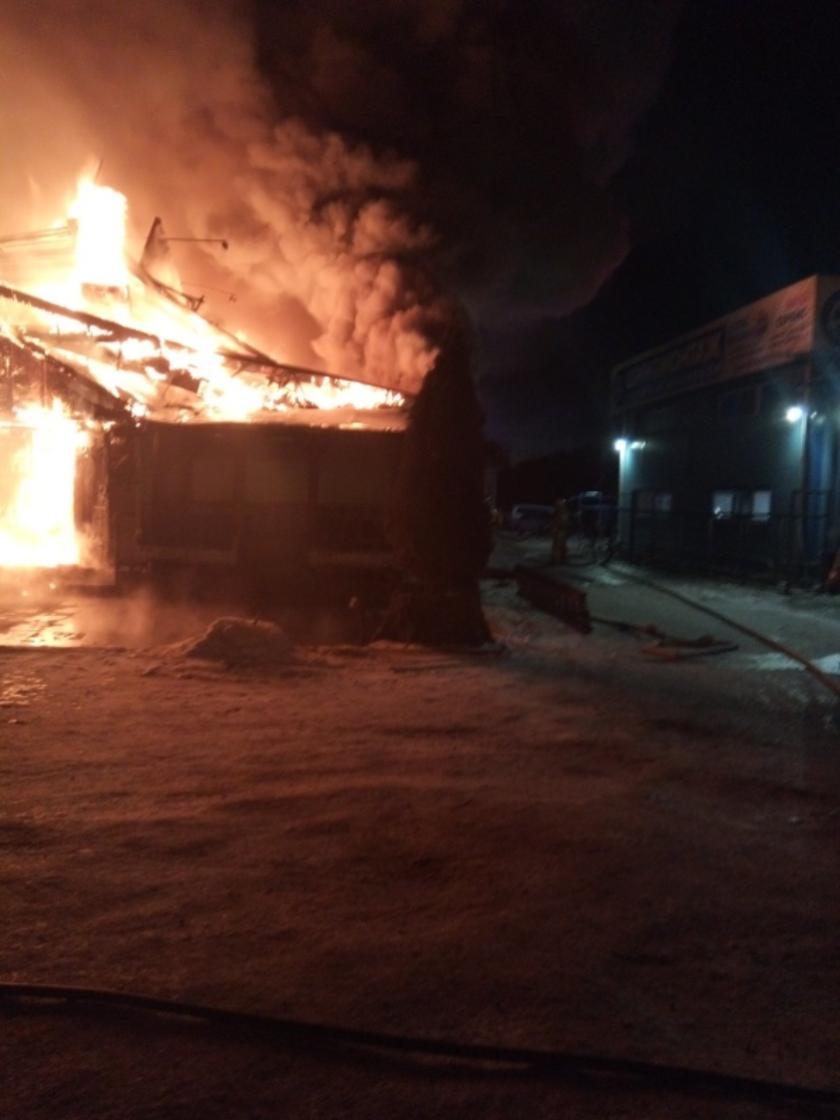 На фото спасателей и видео с места происшествия видно, что пожар был сильный. Здание кафе сгорело почти полностью. На месте происшествия работали спасатели.