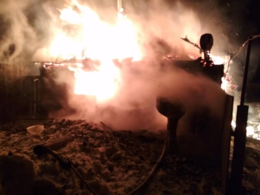 Загорелась баня. На фото спасателей видно, что постройка сгорела почти полностью. В результате пожара пострадавших нет.