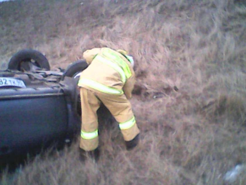 Столкнулись автомобили "Тойота" и "Рено". Одна из машин улетела в кювет и перевернулась. В результате ДТП есть пострадавшие.
