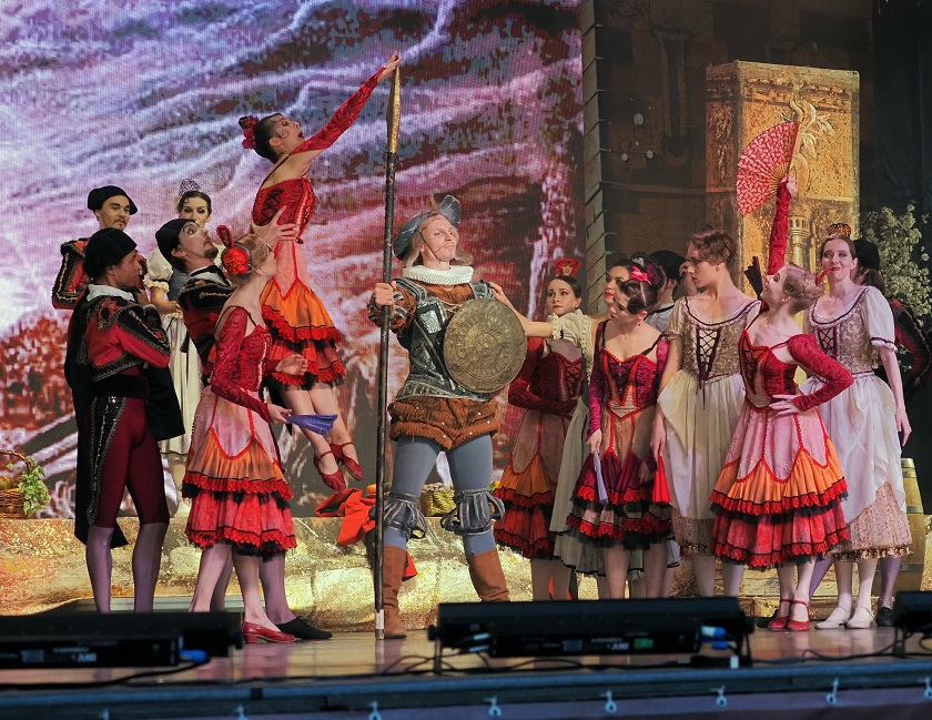 А на сцене – магия танца, много музыки и полный тонкого юмора спектакль, поставленный по роману Мигеля Сервантеса «Хитроумный идальго Дон Кихот Ламанчский» и практически повторяет его сюжет.В числе почетных зрителей на спектакле сенатор, председатель комитета Совета Федерации по бюджету и финансовым рынкам Анатолий Артамонов.