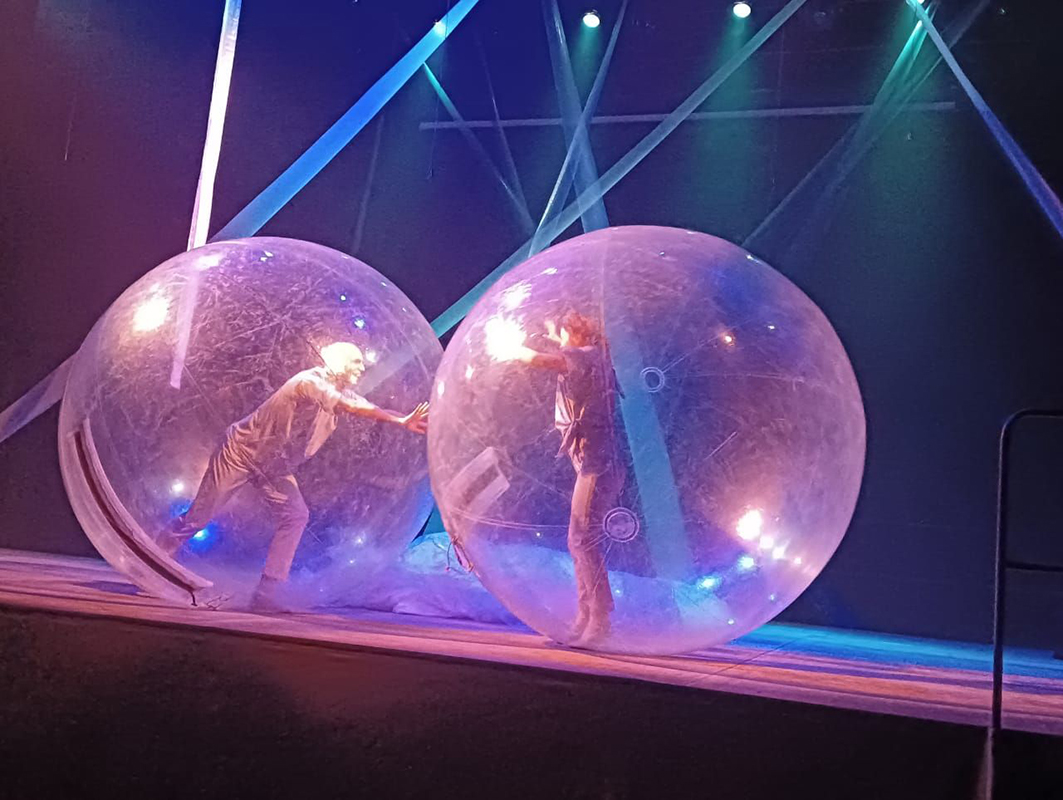 Остранение - прием, призванный, по словам писателя и литературоведа Виктора Шкловского, вывести читателя или зрителя из «автоматизма восприятия». Часто для этого авторы показывают нам мир глазами какого-то необычного персонажа. Это может быть человек с ментальным расстройством, животное или даже пришелец. Однако драматург и режиссер Игорь Афанасьев пошел еще дальше и вывел в качестве центральных фигур двух эмбрионов в исполнении актеров Московского областного ТЮЗа под руководством Нонны Гришаевой, Антона Богдасарова и Ксении Попович. Они выкатываются на сцену в прозрачных шарах, а когда выбираются из них, то постепенно начинают познавать мир и себя. Зародыши ссорятся и мирятся, рассуждают, поют и танцуют, прислушиваются к тому, что доносится до них из внешнего мира, пока не слышат от скандалящих родителей страшное слово «аборт».