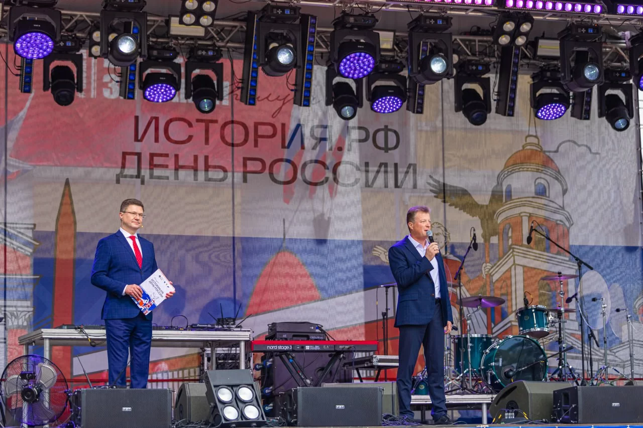 Традиционно основной площадкой празднования Дня России в Калуге становится Театральная площадь. Именно здесь на главной сцене прошёл масштабный концерт, организованный при поддержке министерства просвещения и Российского военно-исторического общества.