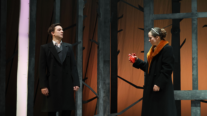 В постановке Константина Тришина нет ничего противоречивого, чужеродного, противоречащего Пушкину. Режиссер просто показывает нам квинтэссенцию описанного автором. Действия, чувства и события в чистом, концентрированном виде. Если Татьяна отдает свое сердце Онегину, то это в прямом почти смысле – вынула и отдала. А уставший от жизни, балов и жеманниц Евгений не принял, стал нотации читать, а сердце обратно Тане во внутренний кармашек запихал, мол, для ее же пользы.