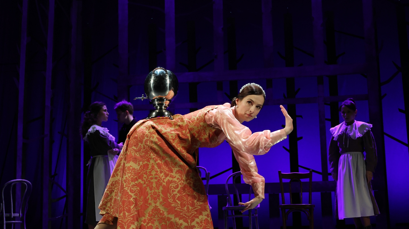 А яркие сцены народной жизни (роман «Евгений Онегин» называют энциклопедией русской жизни) воплощены в сценах гостевания в семье Лариных. С одним но. Режиссер намекает, что это не подлинно русское, а смесь «французского с нижегородским». Танец с самоваром в спектакле – просто восхищает, отдельный респект режиссеру по пластике Софье Гуржиевой. Вспомните начало пушкинского романа – «Мы все учились понемногу...», а учили-то гувернеры из Франции, это считалось хорошим воспитанием и хорошим тоном.