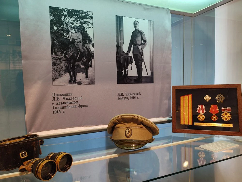Калужане и гости города увидят редкие документы, многие из которых выставляются впервые, статьи из артиллерийских журналов за подписью Леонида Чижевского, фотографии и предметный ряд – ордена, форменные головные уборы – фуражки полковника артиллерии и солдатская, командирский артиллерийский угломер, который позволял вести более эффективную стрельбу (его разработчиком стал Леонид Чижевский). Кстати, после революции по заданию реввоенсовета он организовал в Калуге Курсы красных пехотных командиров.