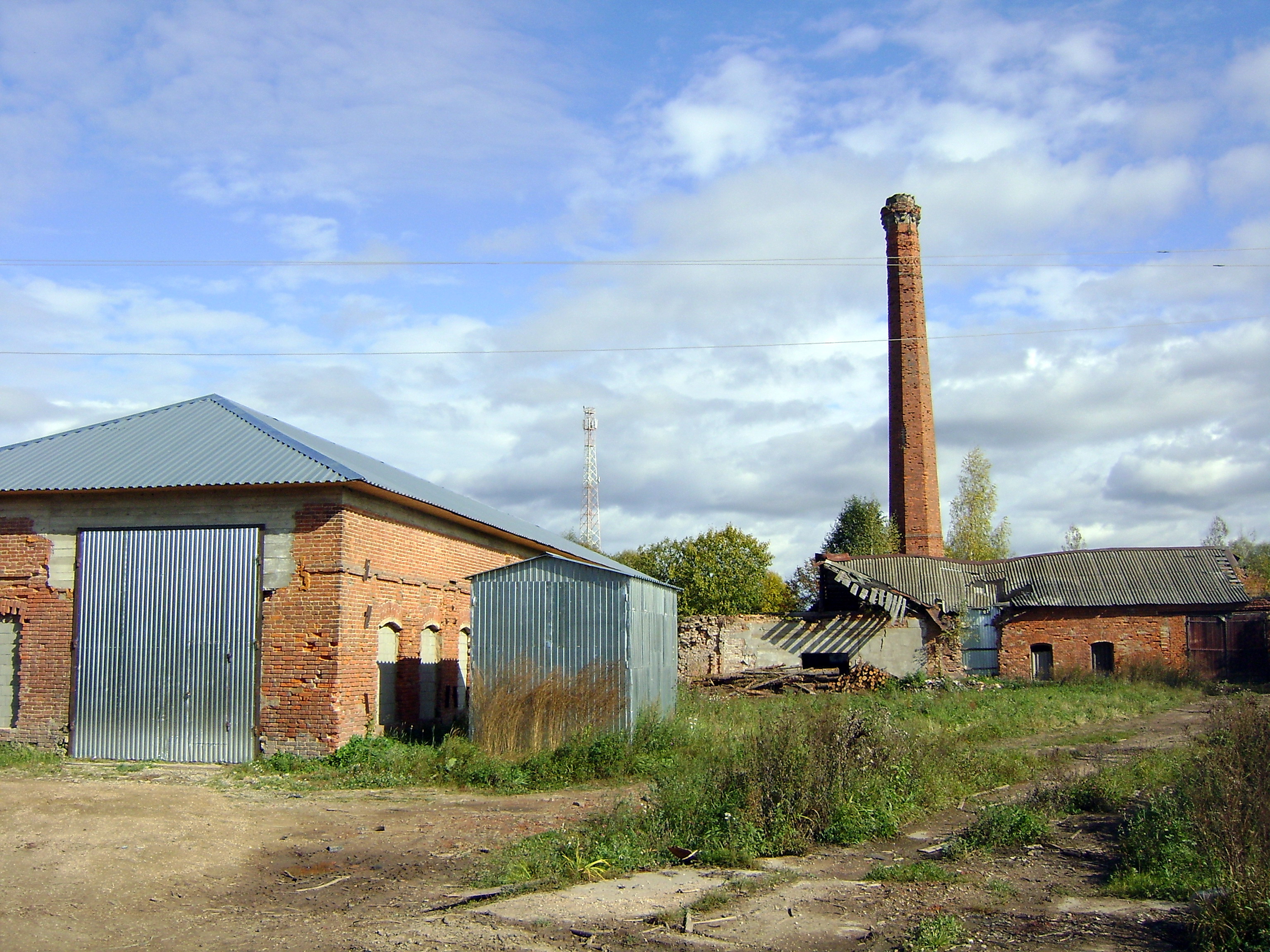 – О хозяине все хорошо отзывались – я говорил с бабками, которым было по 90 лет. Платил зарплату, были рабочие места. Здесь много еще зданий было, – рассказал работавший здесь сельчанин Владимир Федоров, охотно проведя для нас маленькую экскурсию. – И они позже использовались – ветлечебница была, столярка, пилорамы. Разрушали постепенно, даже в перестроечное время. Кирпичом дороги засыпали. Кирпичи с клеймами, вон, посмотрите. Все делалось из нашего, местного. Кирпич по речке сплавляли, на плотах. Лес сплавляли – это она сейчас заплыла. Сейчас в здании фабрики небольшой цех работает: подстилку древесную делаем для птичников, комбикорм. Многое пустует, сами видите, разрушается. Боимся, как бы труба на автомашины во дворе не упала…